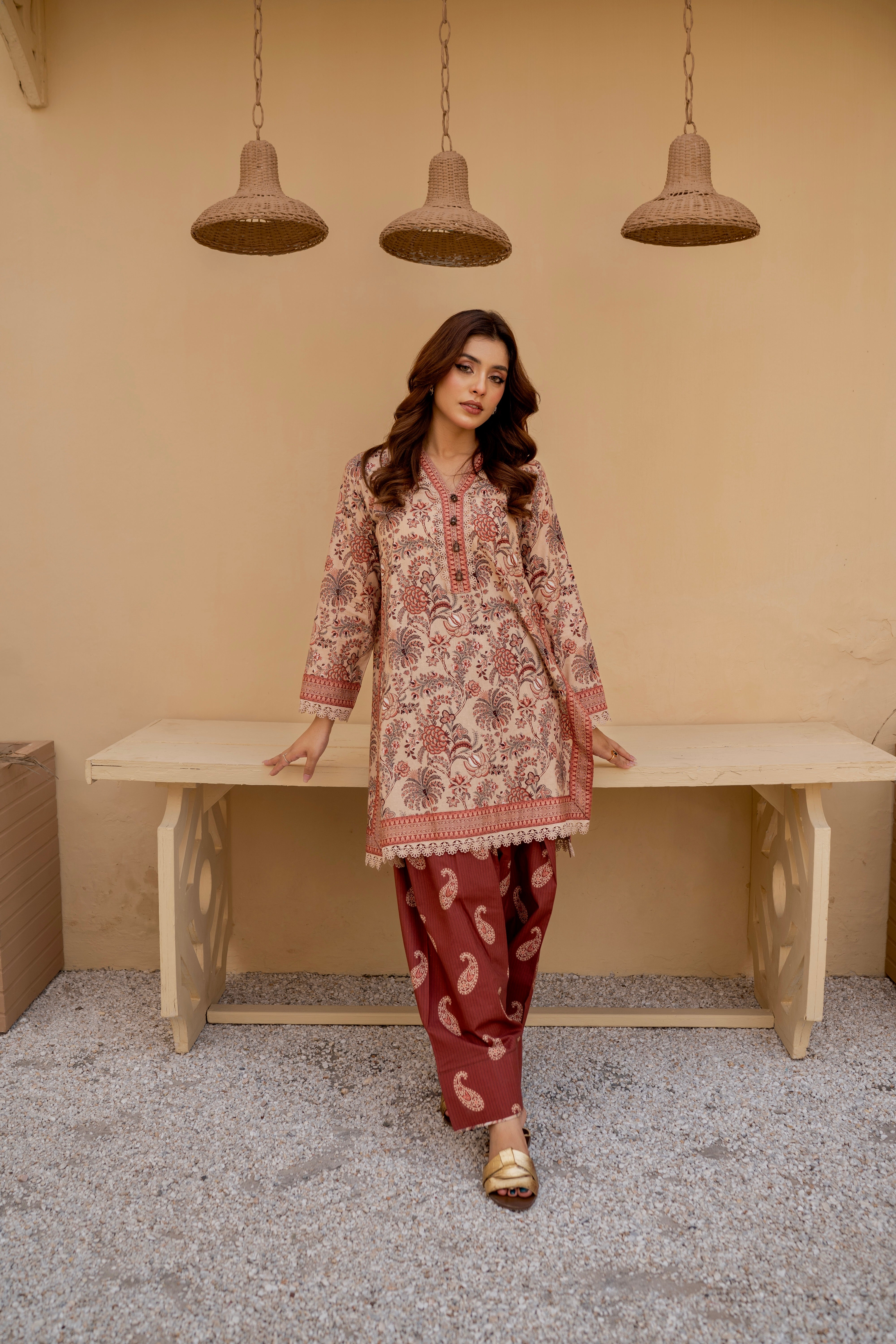 Beige & Maroon